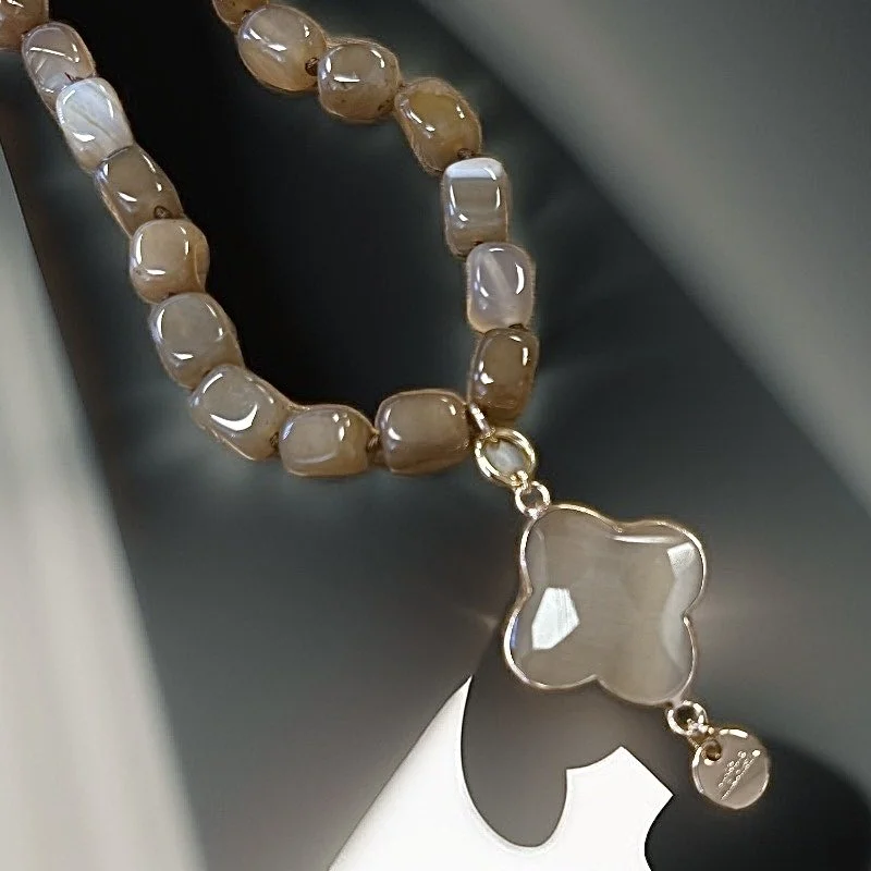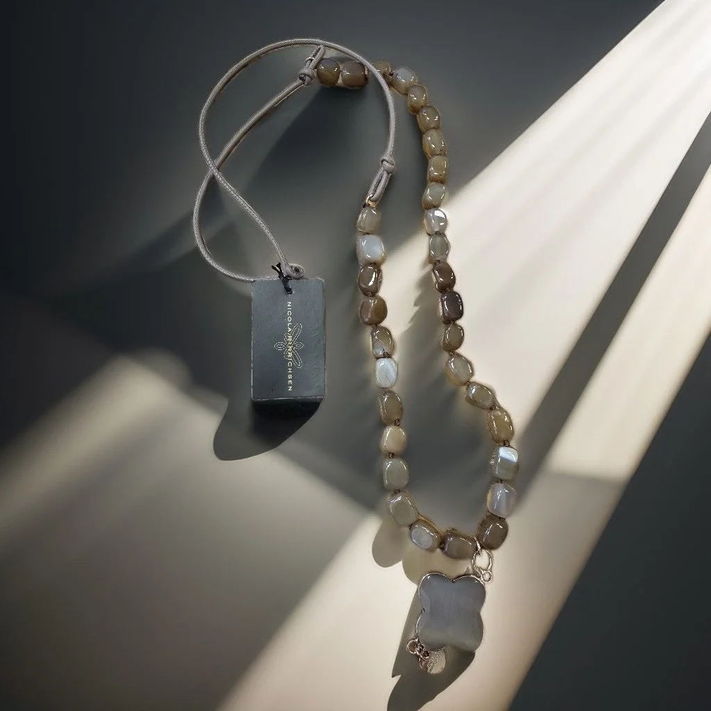 Material: Edelsteine (Rauchquarz) + Lammnappaleder