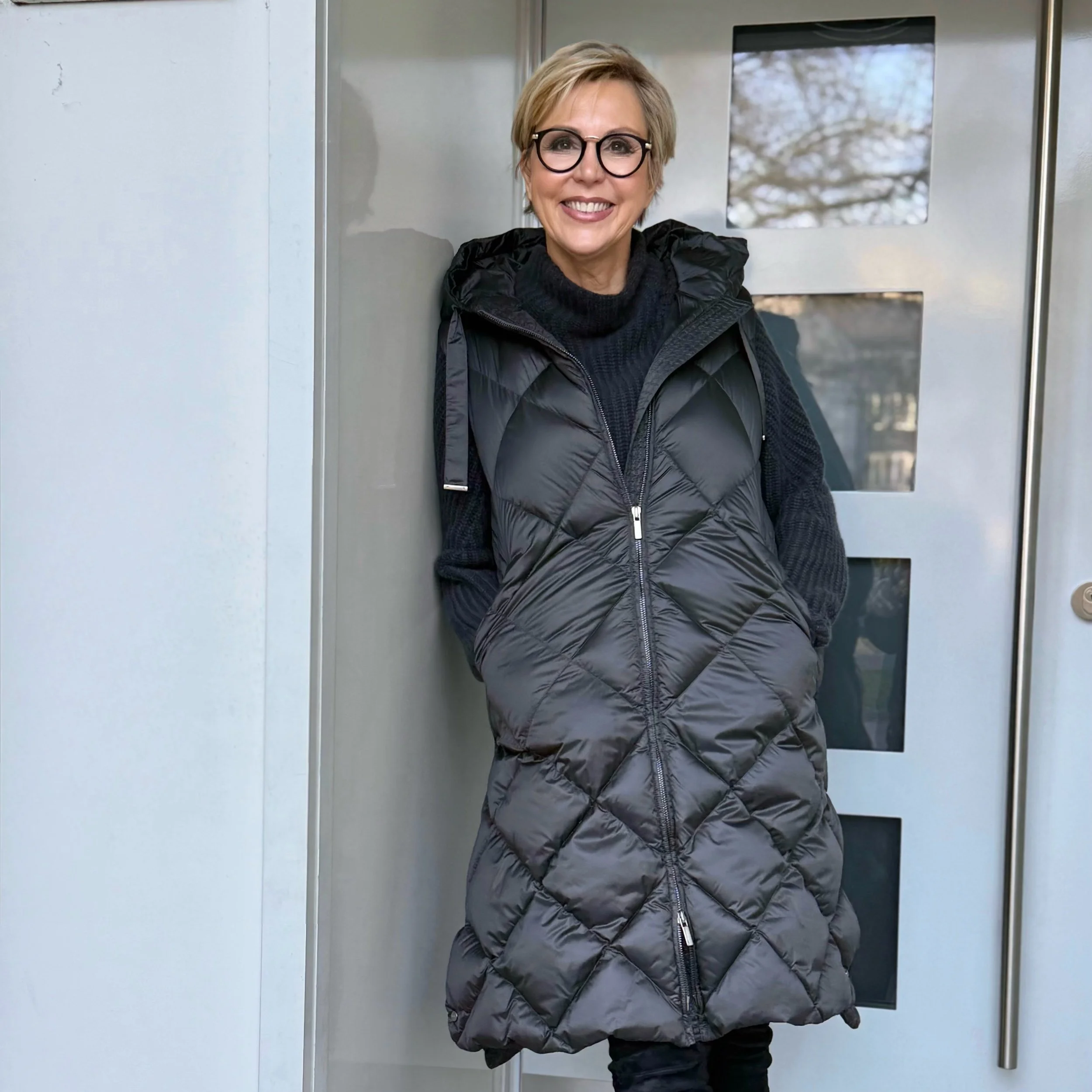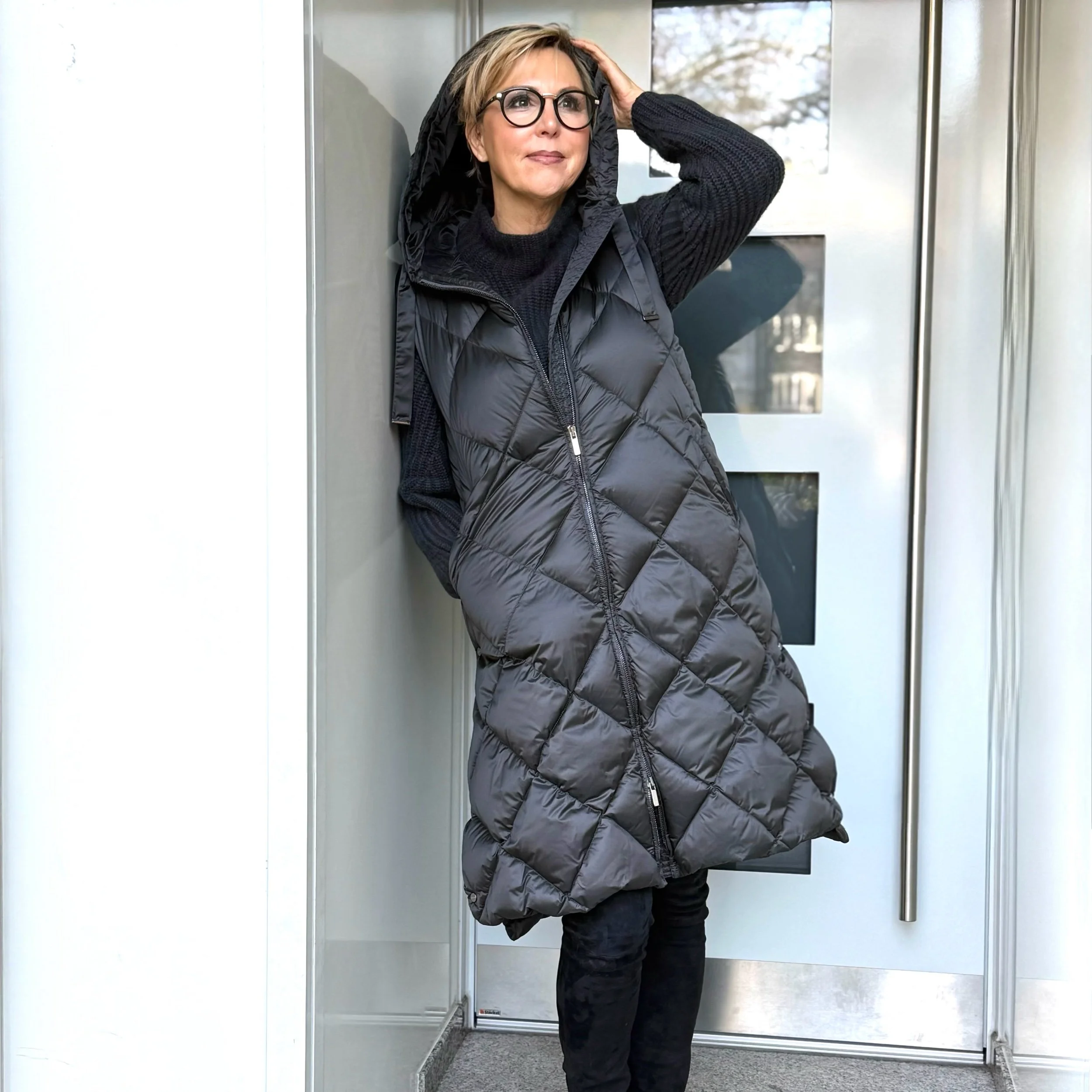 Ein toller Begleiter durch die kalte Jahreszeit: Lange Steppweste mit Kapuze + Gürtel von Max Mara the Cube.