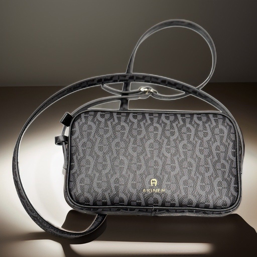 Diese kleine Umhängetasche von AIGNER überzeugt durch ihr reduziertes, elegantes Design und hochwertige Verarbeitung. Das fein strukturierte Material ist mit dem charakteristischen AIGNER-Allover-Monogramm versehen und verleiht der Tasche eine moderne, luxuriöse Ausstrahlung.