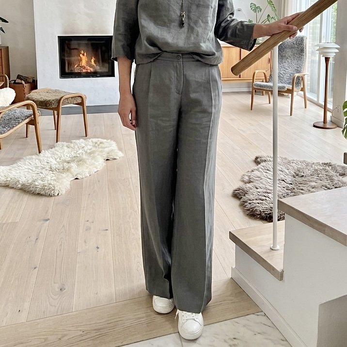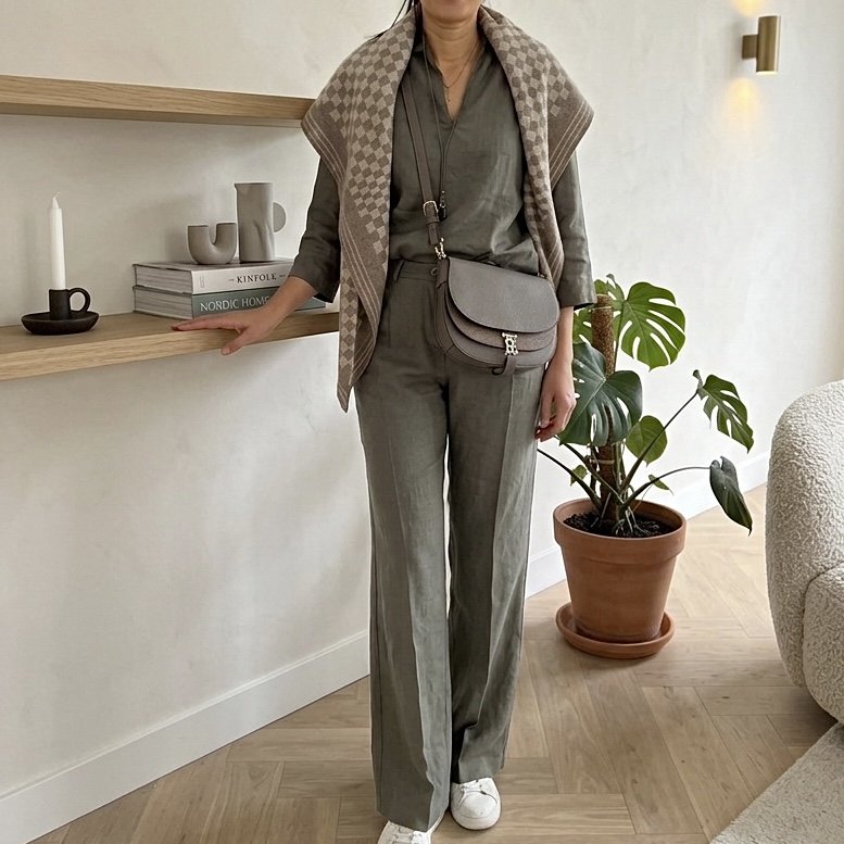 Farblich passend dazu kann man die Leinenbluse von Rosso tragen oder einen Blazer.