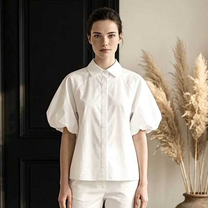 • Klassischer Hemdkragen: Ein spitzer, strukturierter Kragen verleiht dem Piece eine seriöse und zugleich feminine Note.