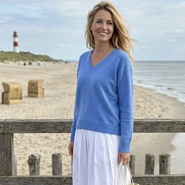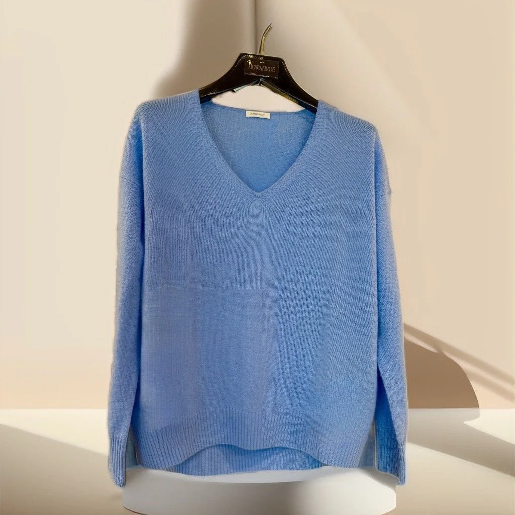 Wunderschöner Pullover mit V Ausschnitt in himmelblau.