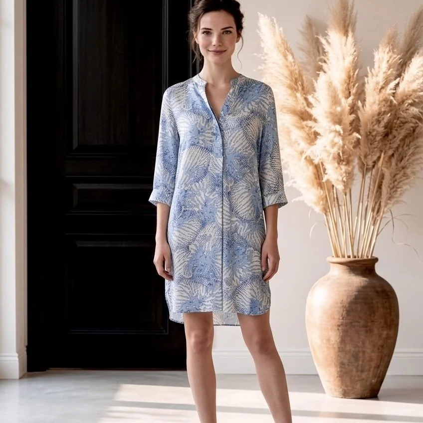 Kombiniere das Kleid mit Sandalen oder schlichten Flip-Flops für einen entspannten Alltagslook – oder mit eleganten Accessoires für einen stilvollen Auftritt am Abend.