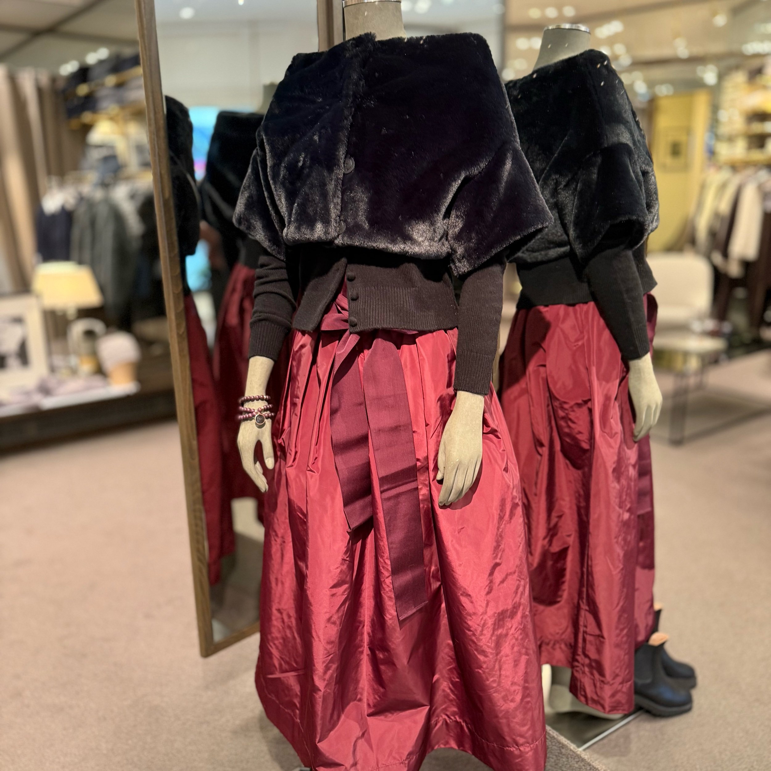 Das Cape wird vorne mit einem unauffälligen Knopf geschlossen und lässt sich wunderbar über Strick, Blusen oder Abendgarderobe tragen. Ideal für festliche Anlässe, besondere Events oder als Statement-Piece im Alltag.