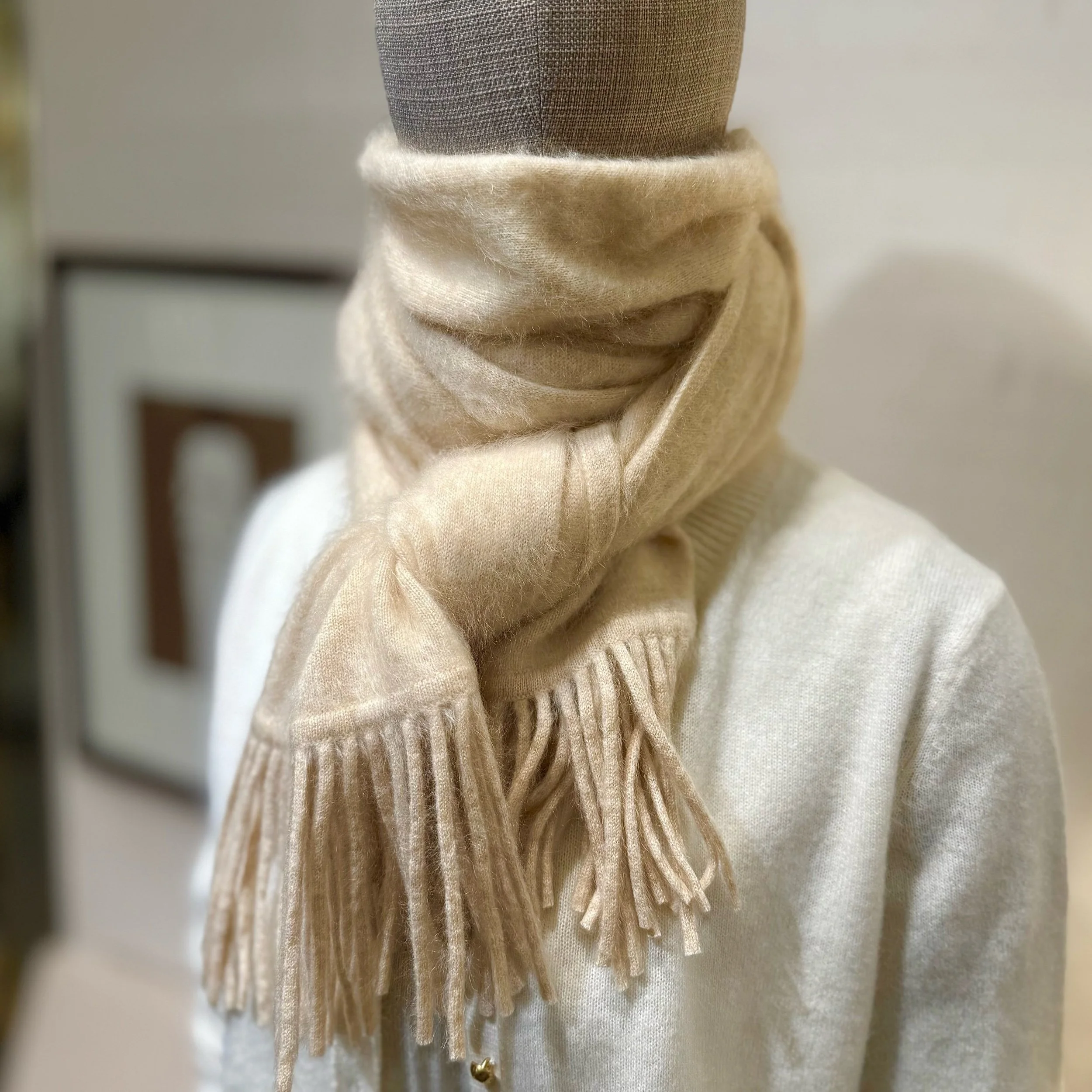 Ein wunderschöner schmaler Schal aus gebürstetem Cashmere mit langen Fransen, den man auf verschiedene Art und Weise binden kann. Er fühlt sich fantastisch an.