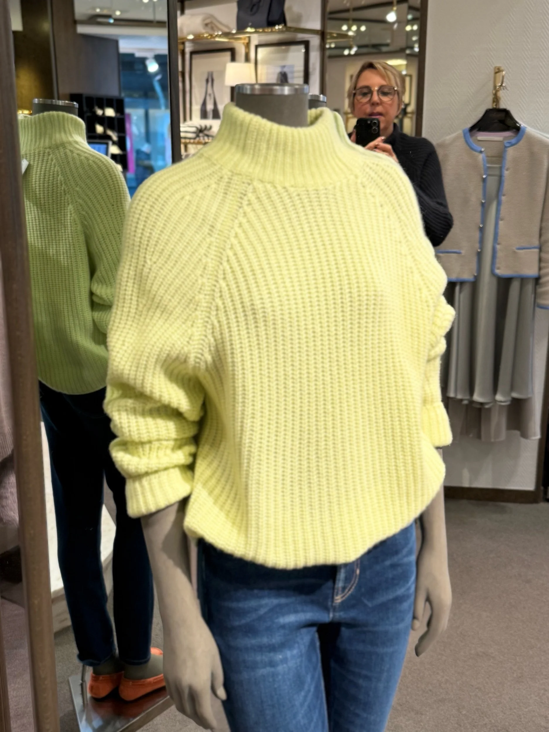 Lässiger Pulli aus der italienischen Manufaktur Bruno Manetti mit Blumen, großem Rundhals und Strickbündchen.