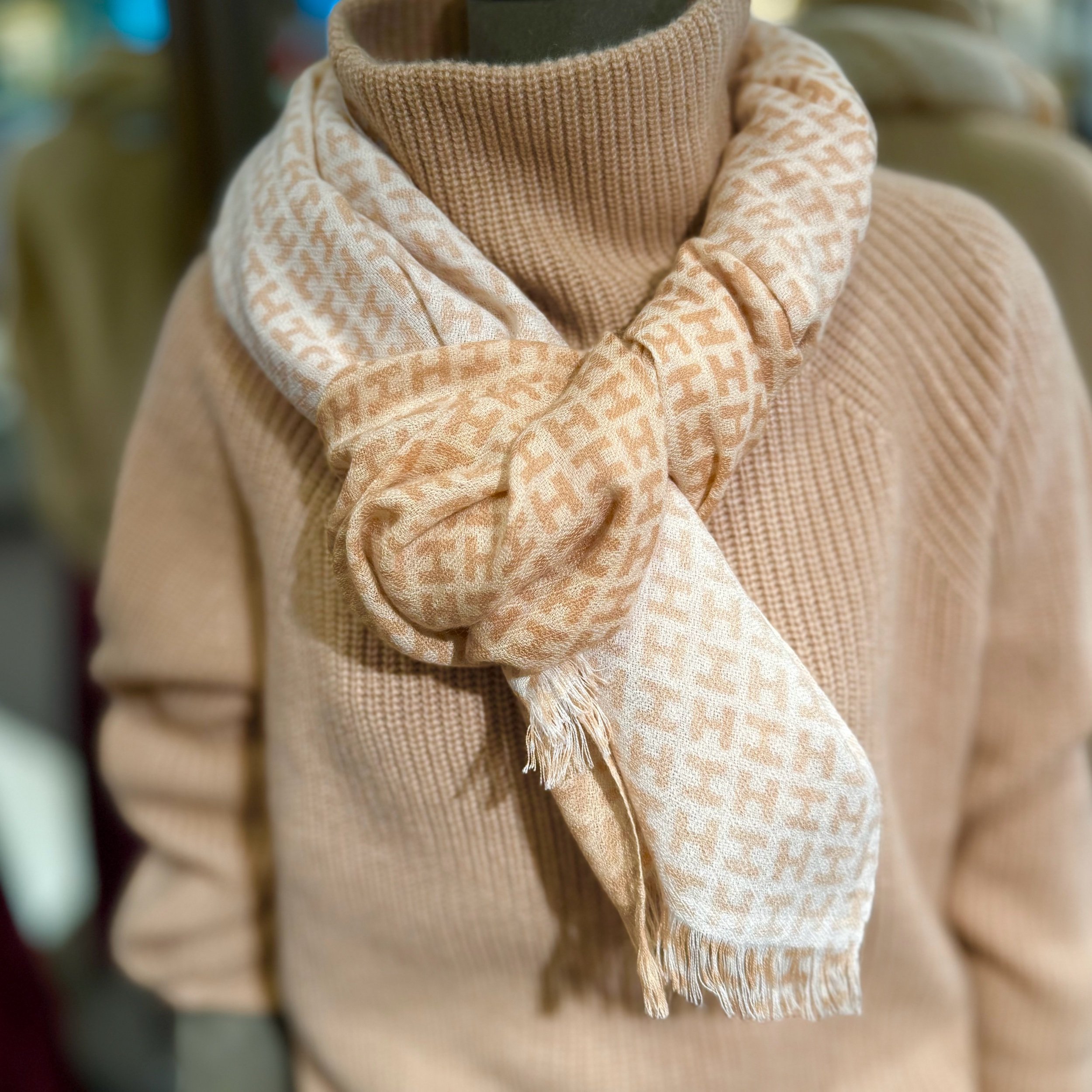 Wunderschöner Schal mit Fransen im typischen Logo Print.