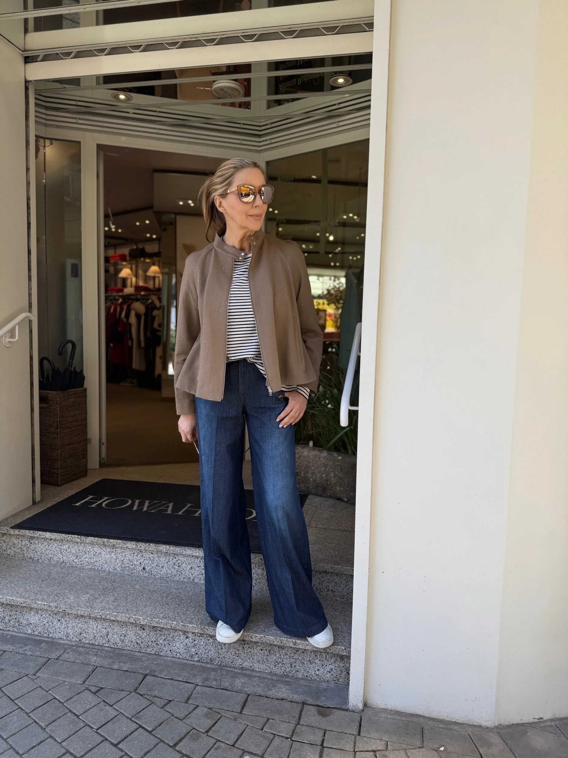Die Hose hat ein weites Bein, 2 Paspeltaschen und ist durch die goldenen Sailor Knöpfe sehr stylisch.