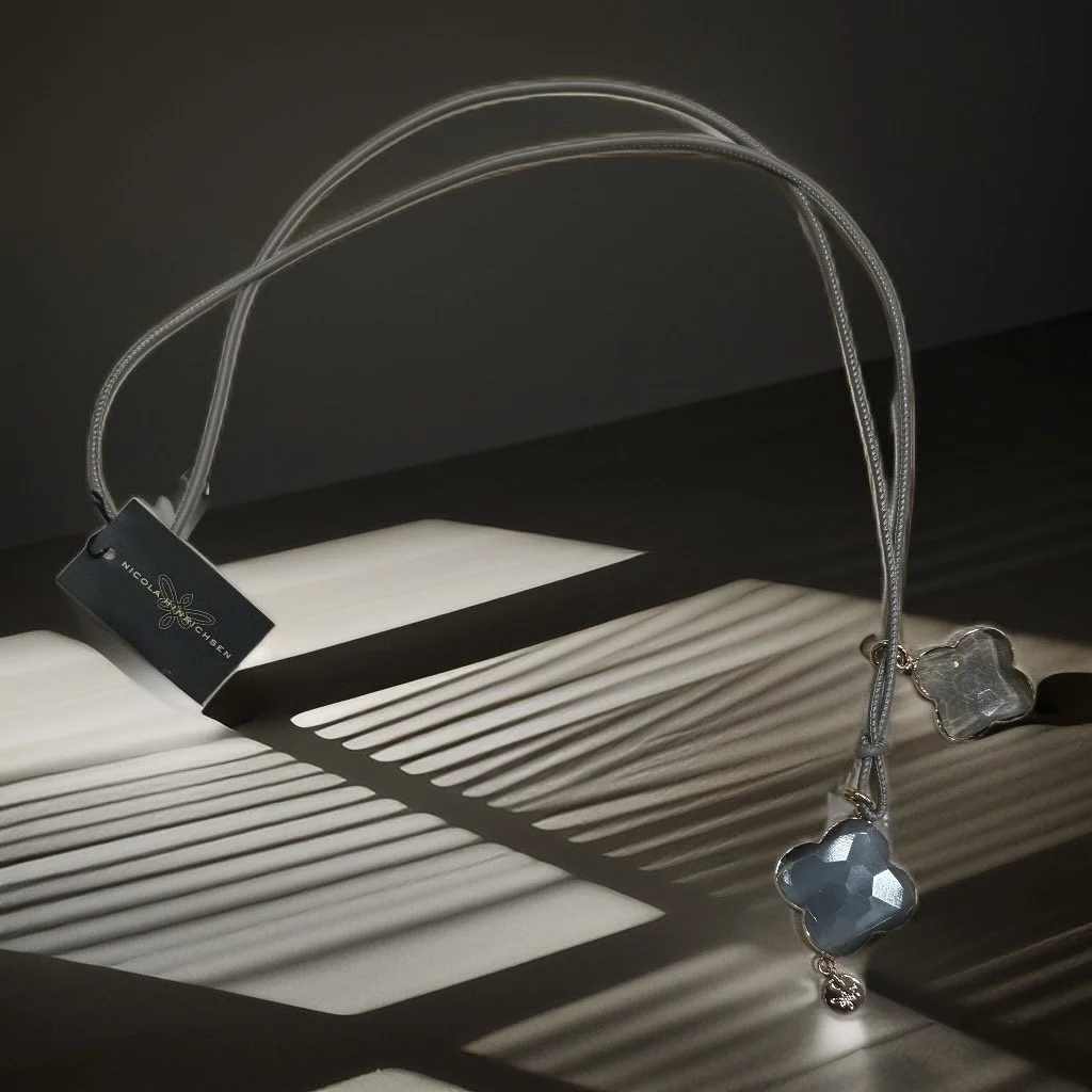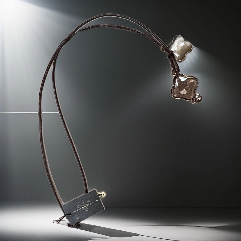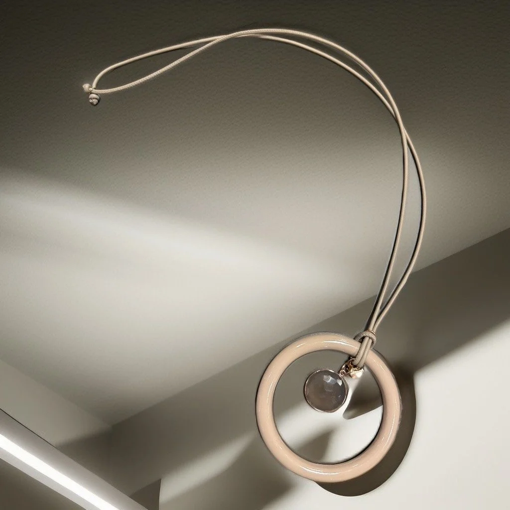 Wickelarmband aus edlen Holzperlen mit Edelsteinanhänger in Silber 925, rosévergoldet.