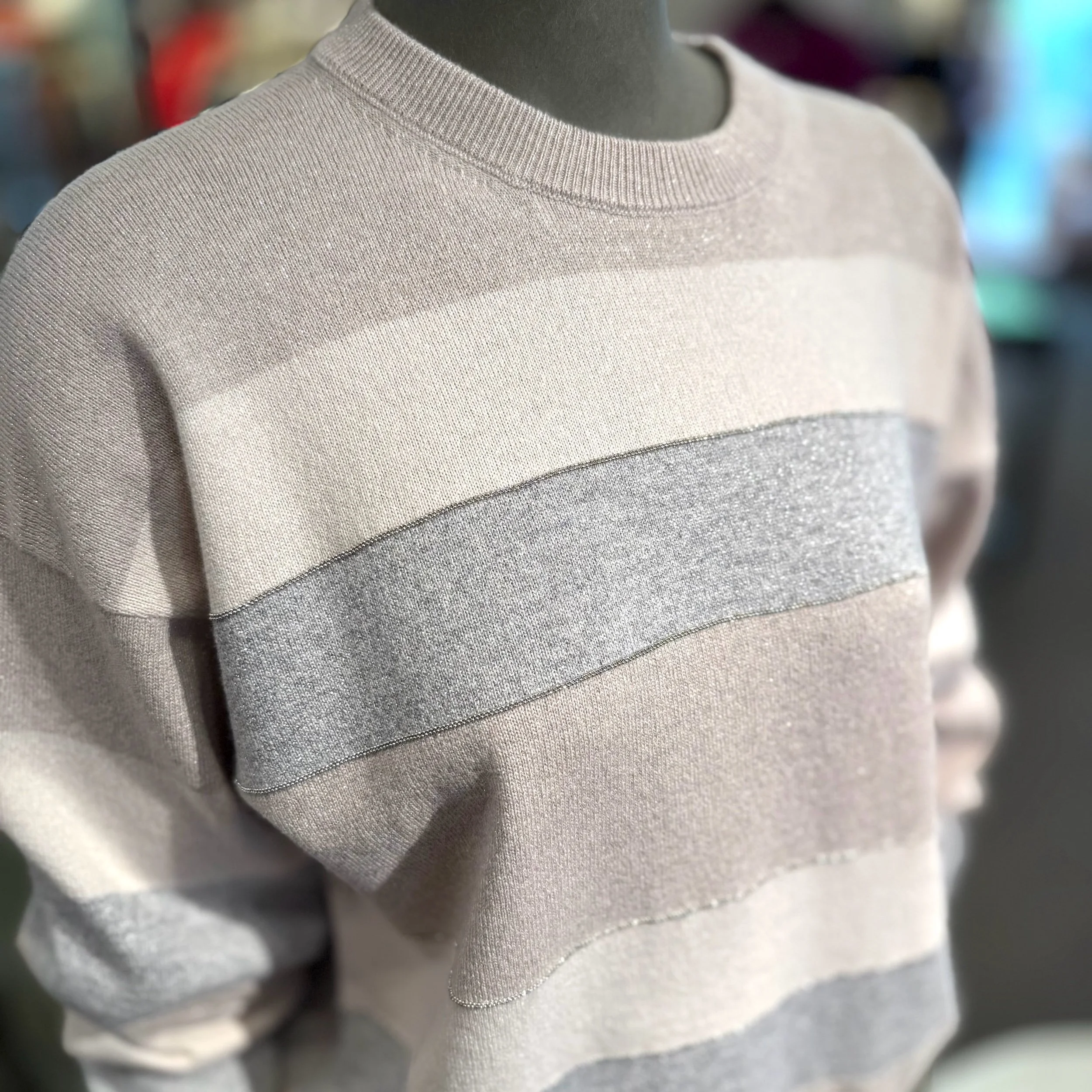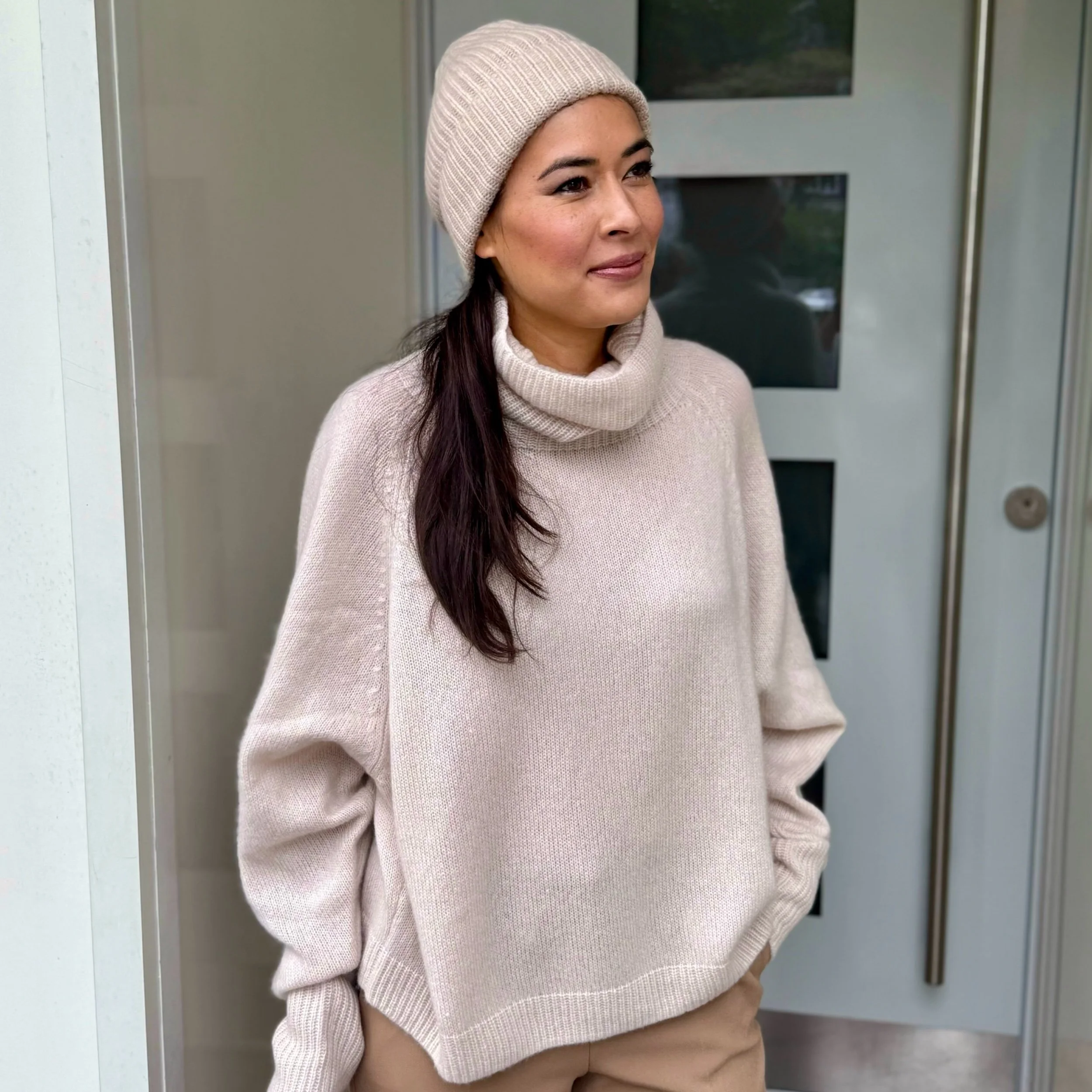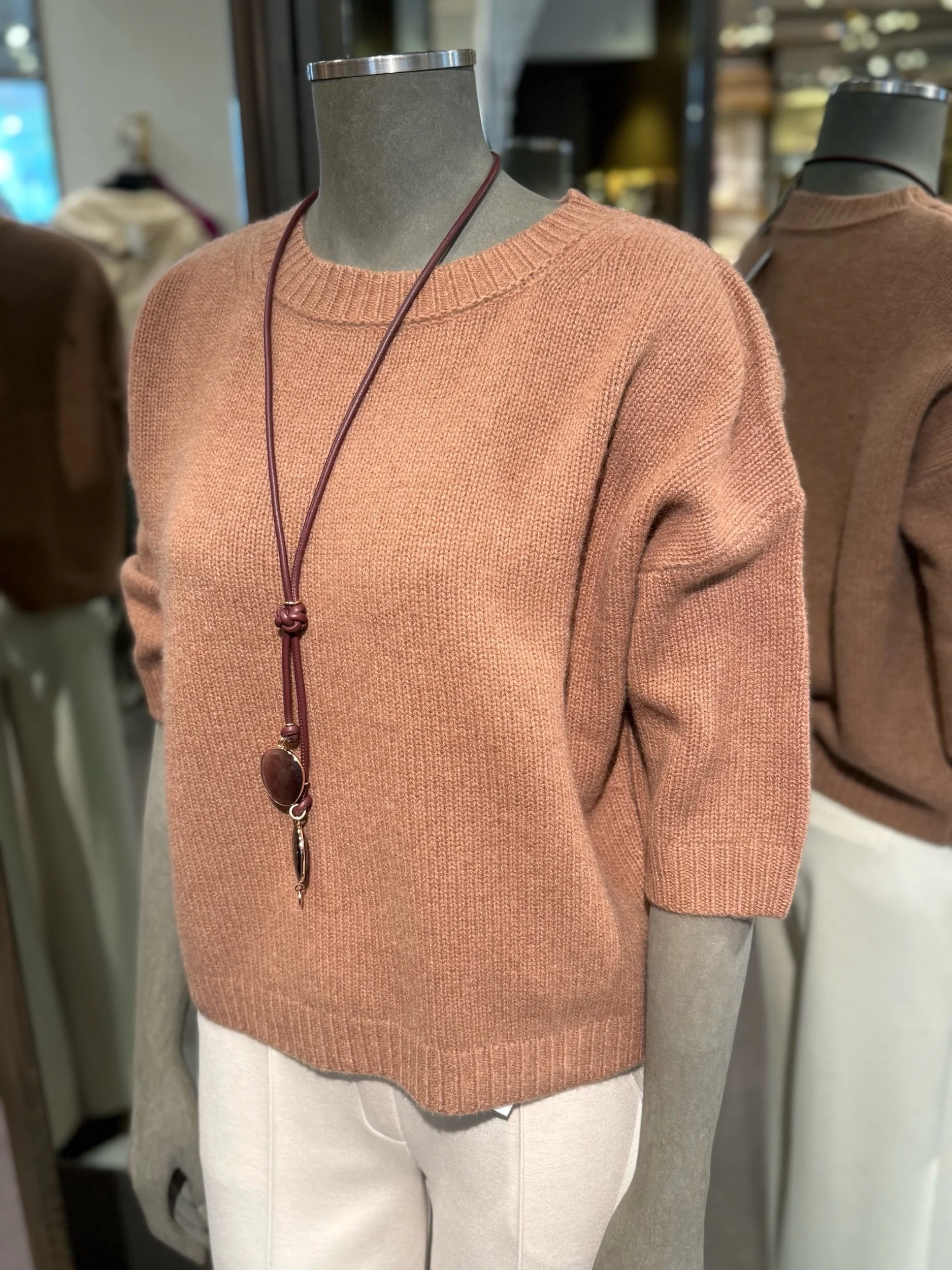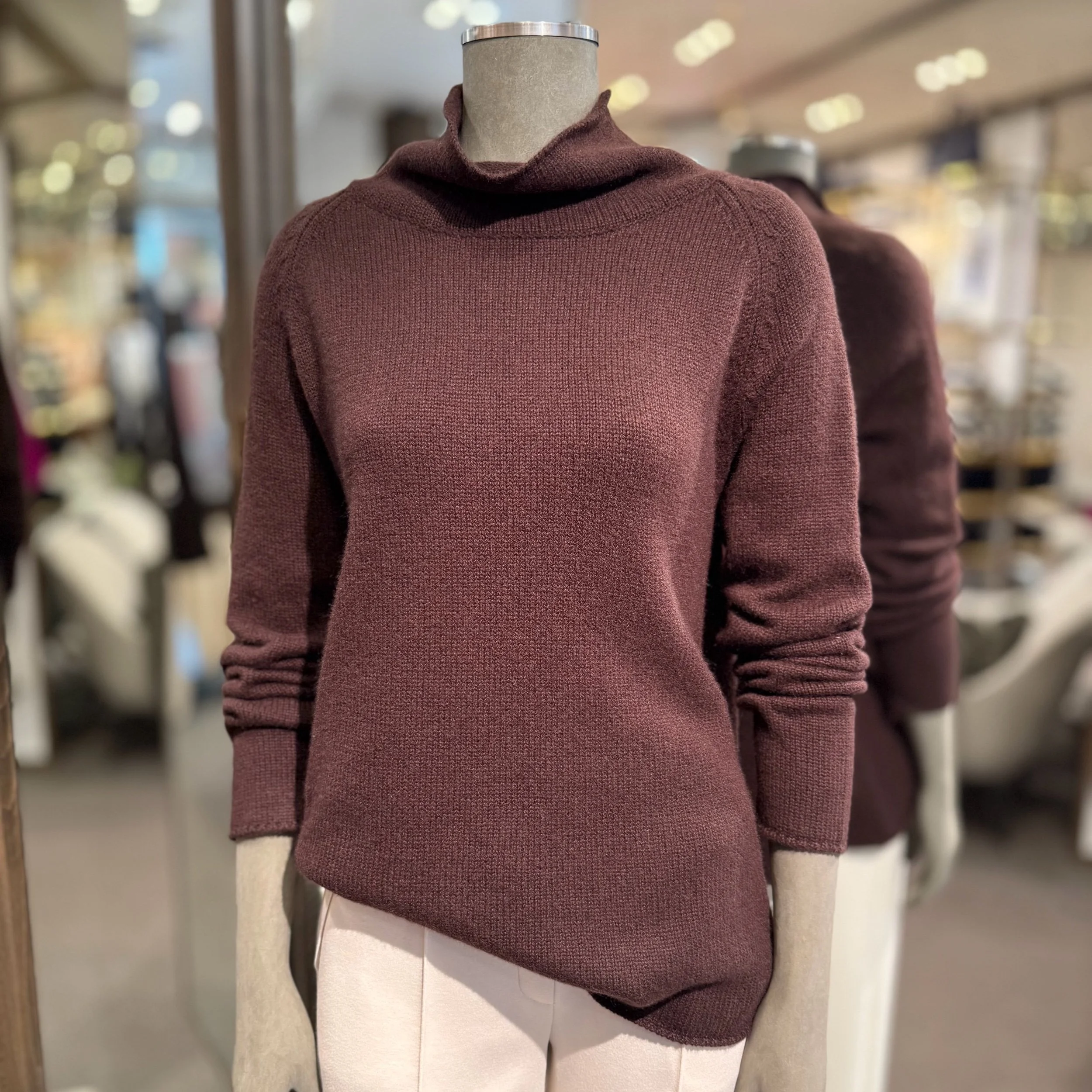 Iris von Armin Pullover Fallou in einem Halbpatentstrick in lockerer Passform mit Stehkragen und verkürztem Arm.