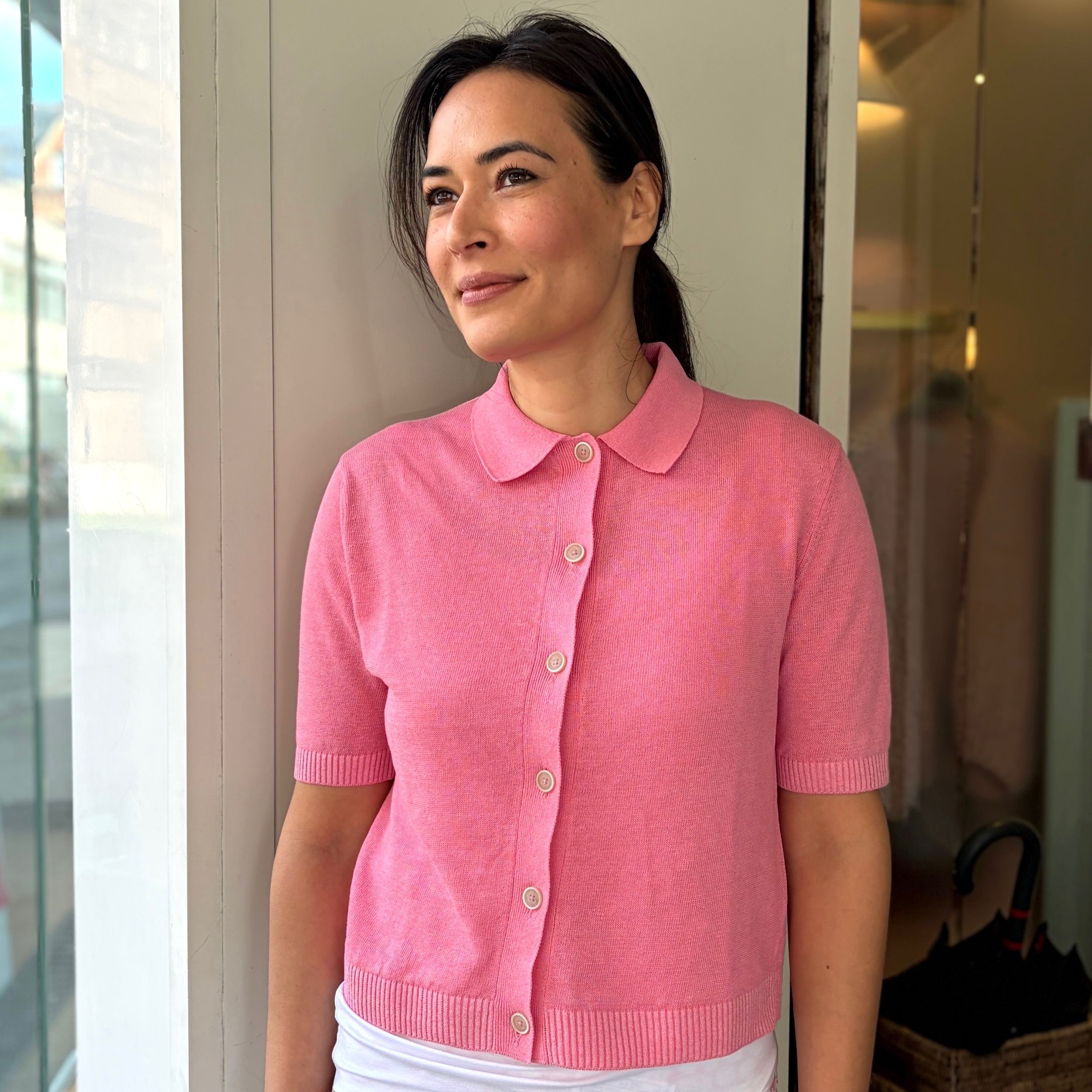 Ein gepflegtes Poloshirt mit offener Knopfleiste und Rippbündchen.
