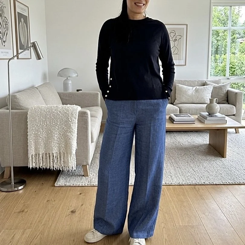 Material: 58 % Leinen, 39 % Lyocell, 3 % Elasthan