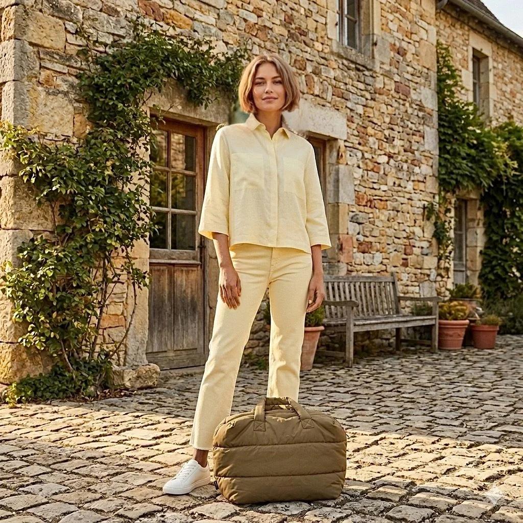 Diese Bluse wird mit der Seductive Hose Claire cropped im gleichen Farbton gezeigt.
