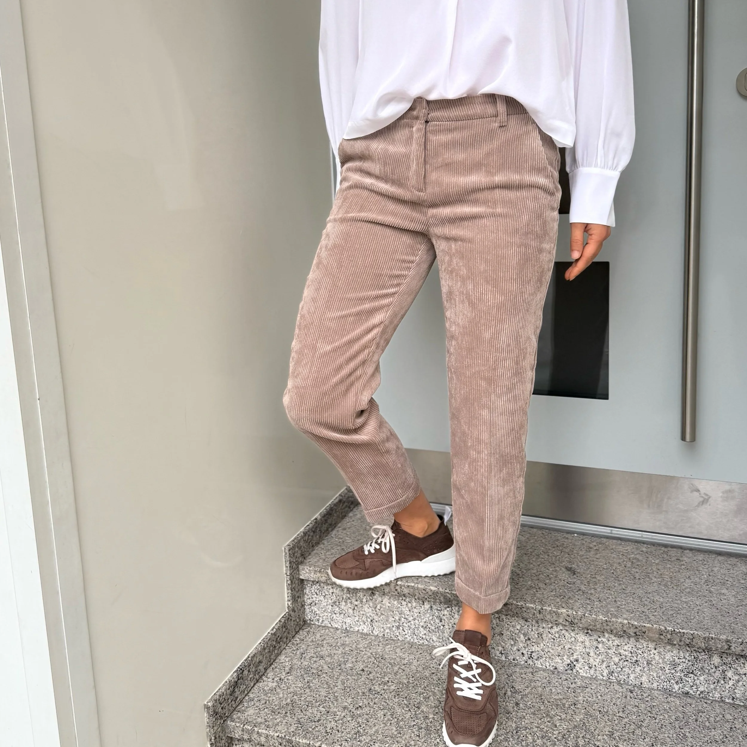 Diese Schlupfhose ist nicht nur super bequem, sondern auch sehr dekorativ mit ihren Golddekorknöpfen. Sie hat ein gerades Bein.