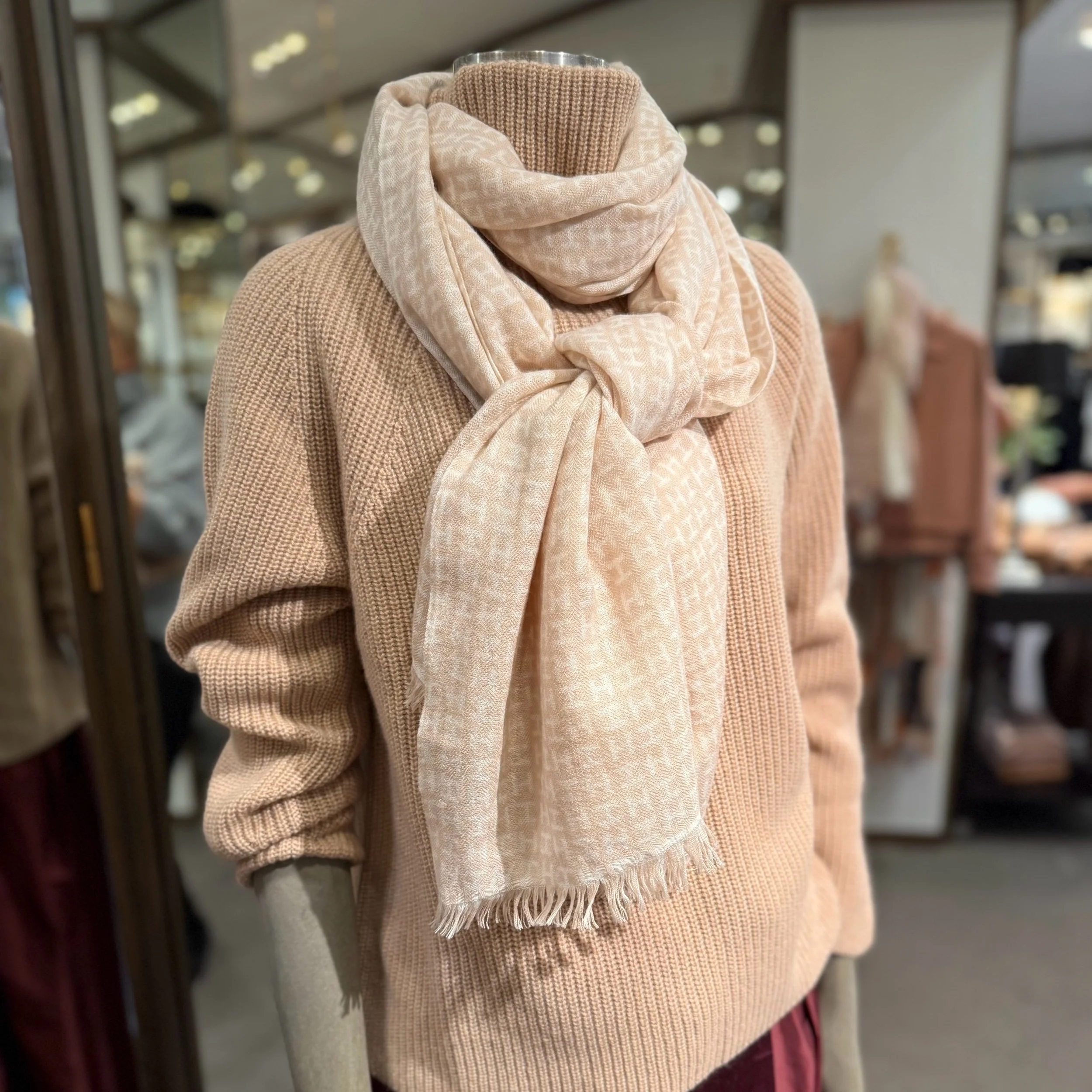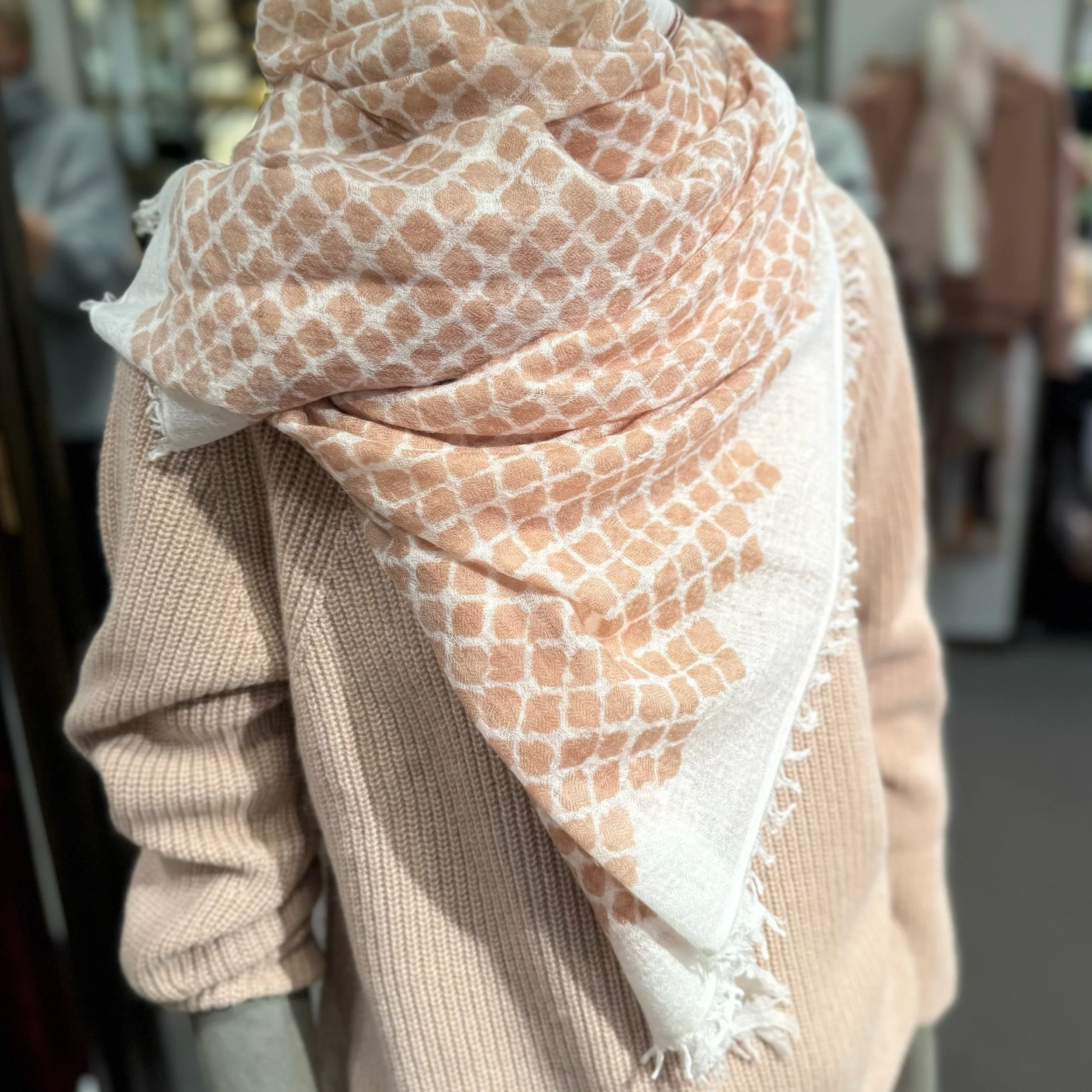 Dieser stilvolle, weich fallende Schal in einem sanften Caramel-Ton verleiht jedem Outfit eine elegante, harmonische Note. Das feine, dezente Muster sorgt für einen hochwertigen, modernen Look, ohne aufdringlich zu wirken. Dank seiner angenehmen Haptik und leichten Struktur kann er sowohl indoor als auch outdoor getragen werden – perfekt für jede Jahreszeit.