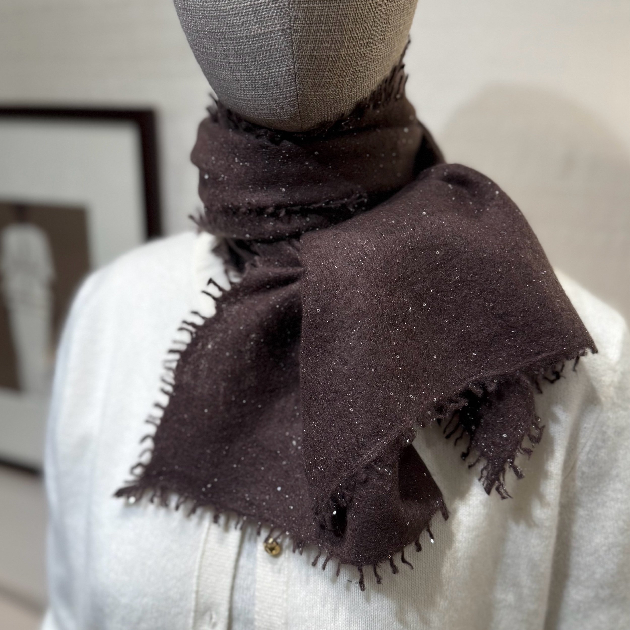 Ein wunderschöner schmaler Schal mit Pailletten und Fransen, den man auf verschiedene Art und Weise binden kann. Er fühlt sich fantastisch an.