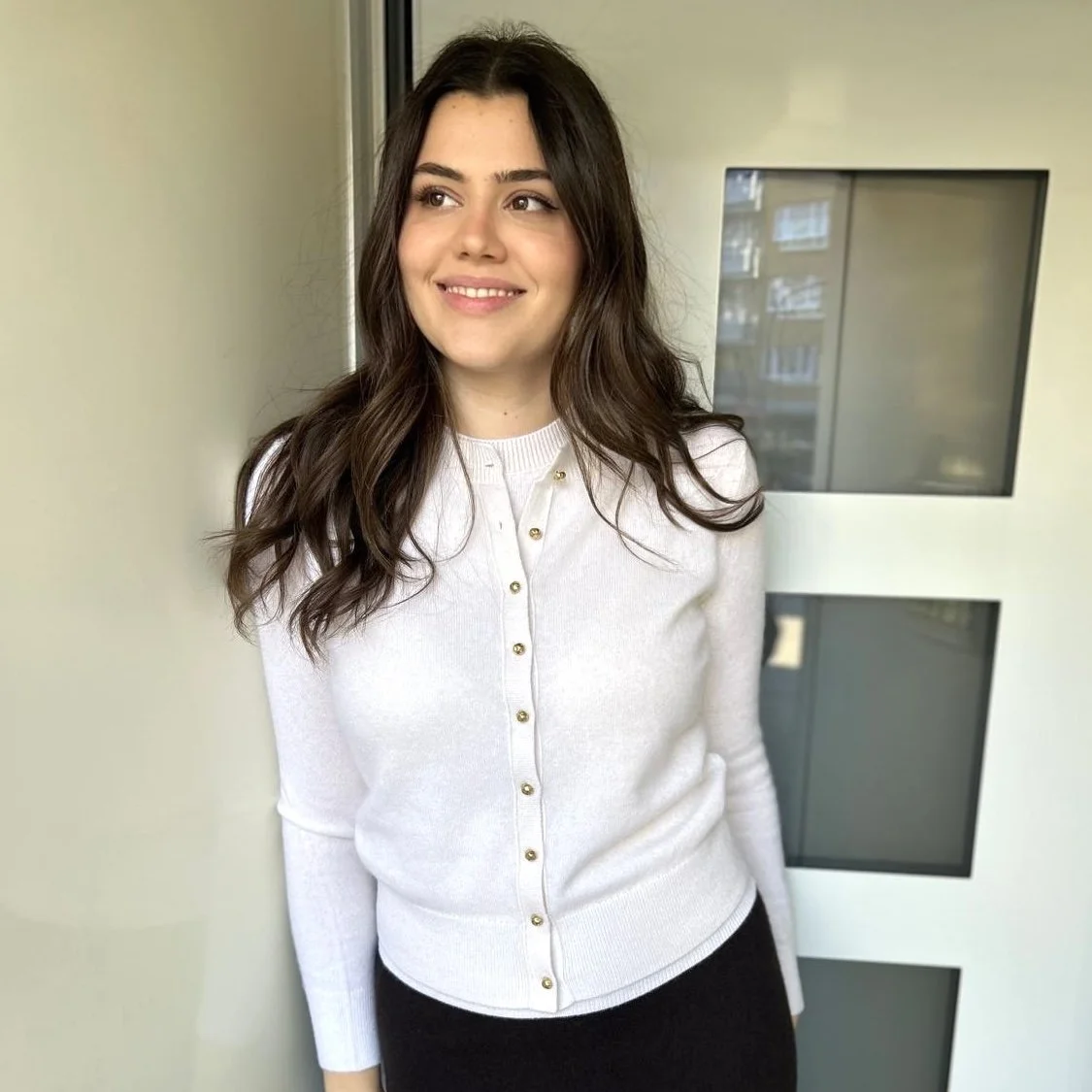 Die Iris von Armin Strickjacke Grandosa hat einen langen Arm, einen 2 Wege Reißverschluss und eine lockere Passform. Sie hat schöne Ärmel Details und ist aus 4 fädigem 5gg Cashmere in einem Halbpatent verstrickt.