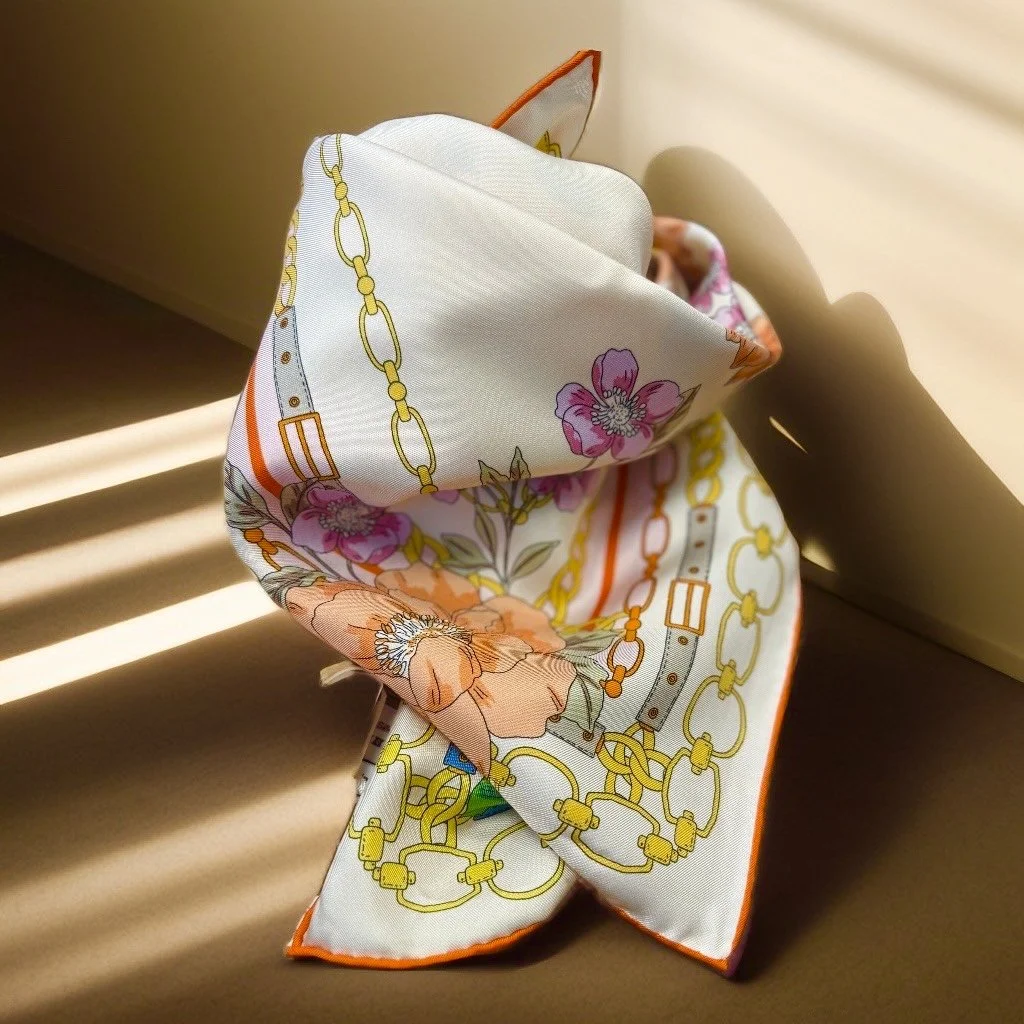 Ein ganz besonders schönes, handrolliertes Seidentuch in quadratischer Form.