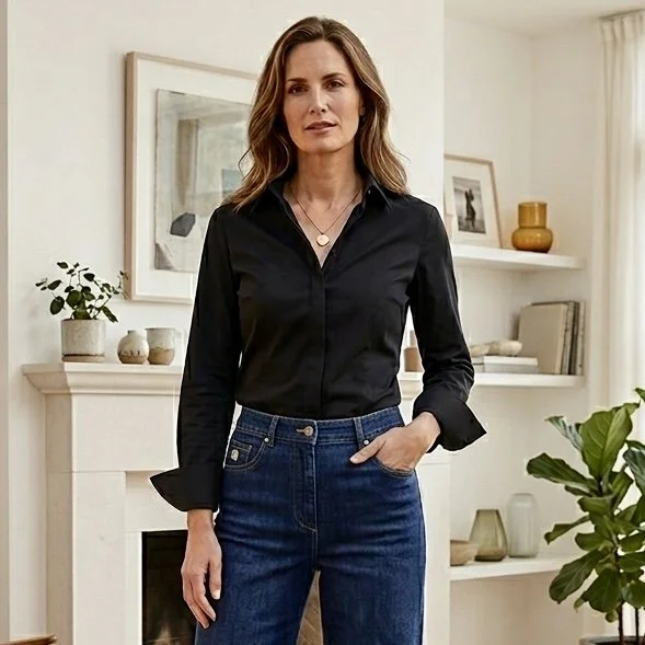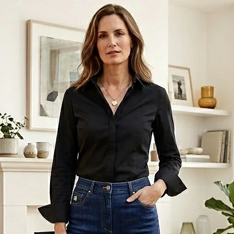 Every day Piece: Bluse mit figurbetonter Passform (taillierter Schnitt) aus matt glänzendem Jersey von Riani. Mir langem Arm und Manschetten, verdeckter Knopfleiste und Hemdkragen. Die Bluse fühlt sich auf der Haut ganz wunderbar an und hat einen hohen Tragekomfort.